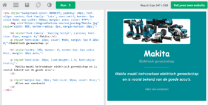 While HTMLfiddle has a basic and somewhat dated appearance, it offers a unique “reverse editing” feature. You can edit the result directly in the preview window -much like a standard text editor- and your changes are instantly reflected in the underlying HTML source code. This makes it a great tool for those who prefer a more visual approach to coding.